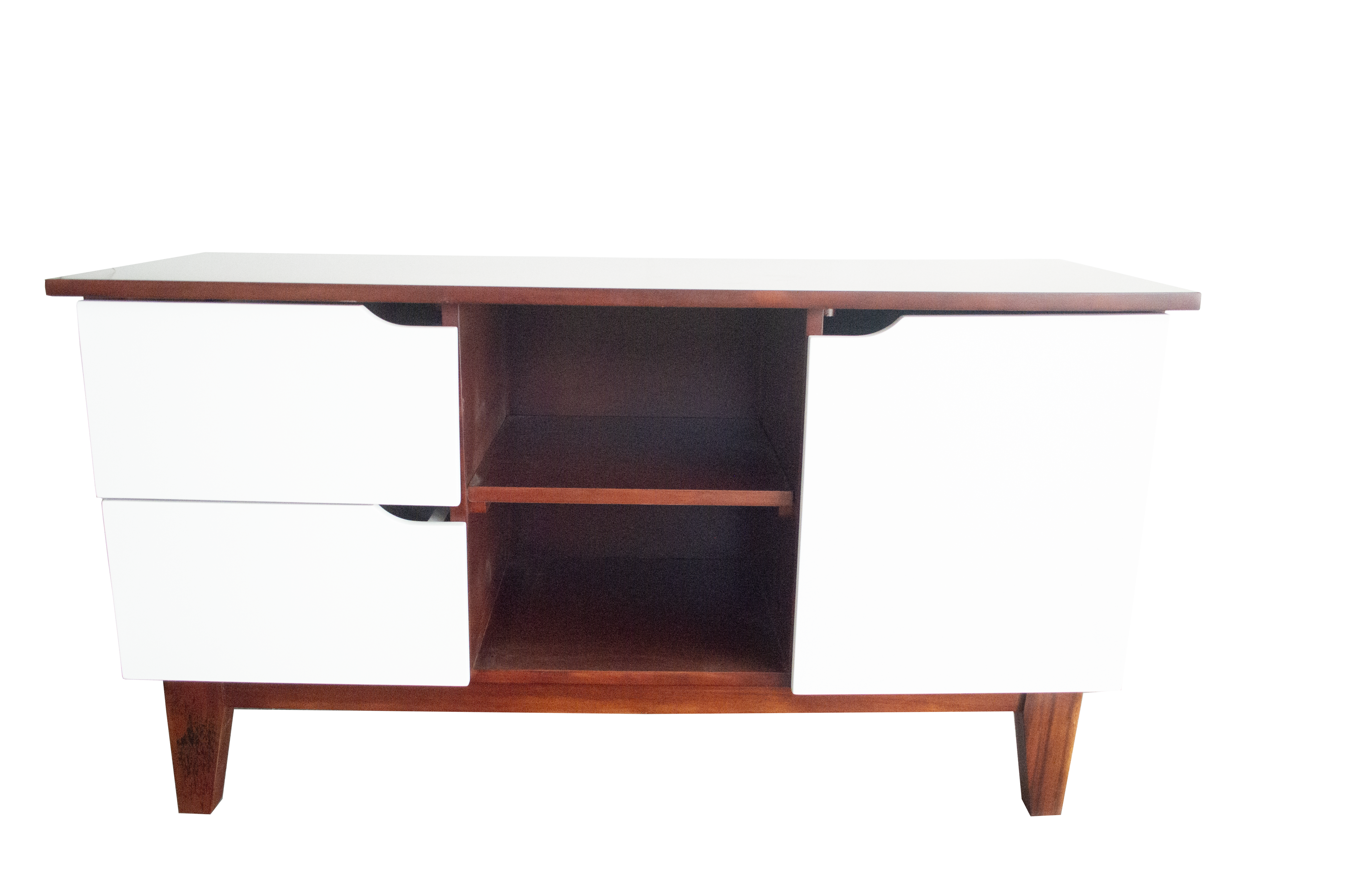 Esta mesa de tv se caracteriza por su estructura estilizada que combina funcionalidad y elegancia. Los dos cajones, perfectamente integrados, ofrecen un almacenamiento discreto, mientras que el estante central proporciona un espacio ideal para dispositivos multimedia. Su diseño minimalista y de líneas limpias permite que se integre fácilmente a diversos estilos de decoración, lo que la hace una opción versátil. De igual forma posee una amplia superficie que permite colocar el TV junto con otras decoraciones.